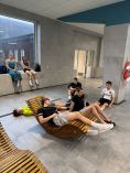 Im Kraftraum kam der Wunsch nach Hyrox-Workouts auf. Dem wollten wir auf jeden Fall nachkommen. Die Sportler durften sich an den einzelnen Workouts austesten. 1000m Skiergometer, 50m Gewichtschlitten schieben und ziehen, 80m Burpee Broad Jumps, 1000m Ruderergometer, 200m Farmers Carry, 100m Sandbag Lunges und weil das alles ja noch nicht anstrengend genug ist, kamen zum Abschluss noch 100 Wall Balls. Die Jungs machten die Übungen mit anderen Gewichten, als die Mädels. Aber anstrengend war es für alle. Mal schauen, ob der Wunsch, einen HYROX zu absolvieren, bestehen bleibt.